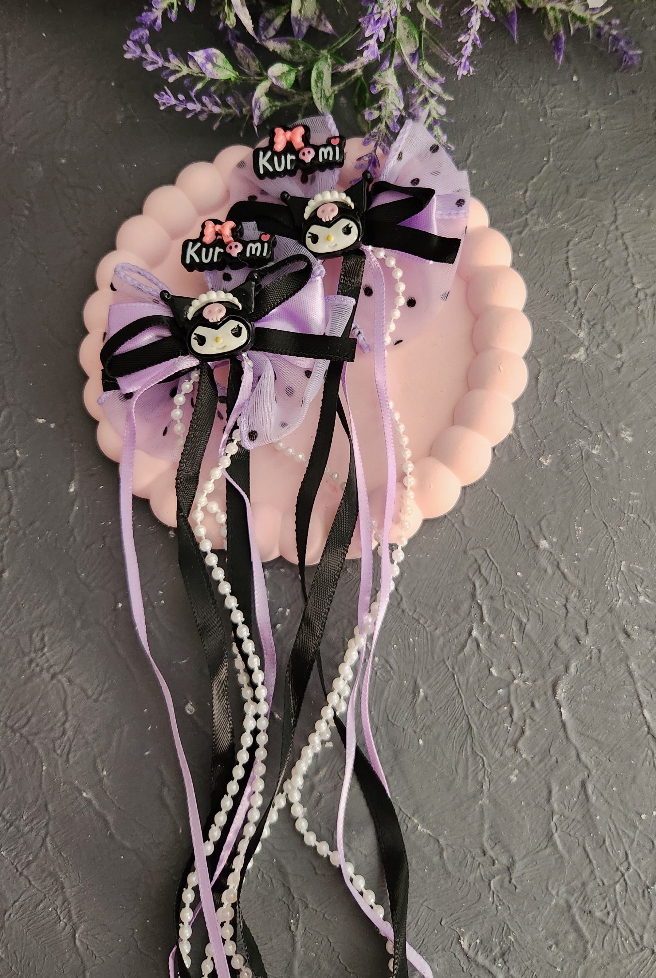 Kuromi Fiyonk İnci Sarkıt Pens